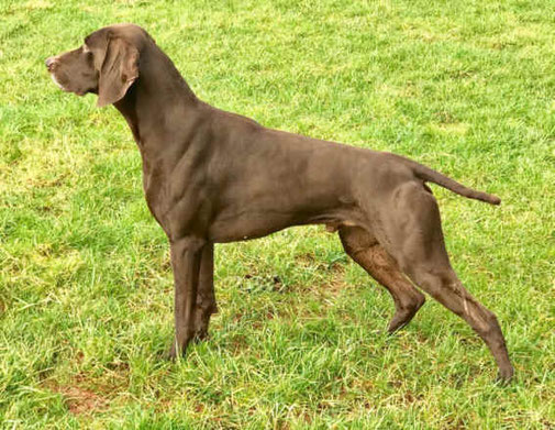 Cerberus von Baden ist ein kapitaler brauner Rüde mit sehr guter Substanz, typischem Rüdenkopf, sehr gutem Rücken und sehr guter Aufrichtung, korrektem Gangwerk und bestem braunen Pigment. Der enorm bemuskelte Rüde beeindruckt allein schon durch sein äußeres Erscheinungsbild.